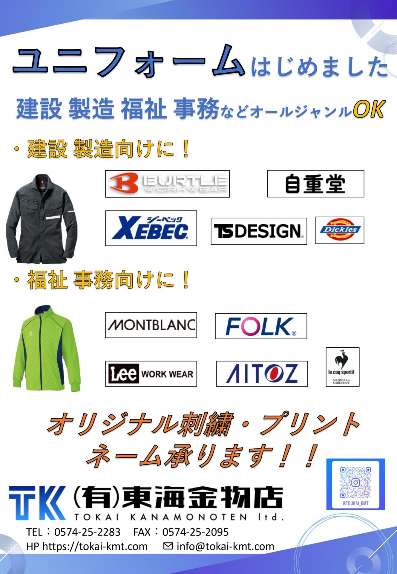 2026.04.02 新商品情報 ユニフォーム取扱い始めました! ユニフォーム取扱い始めました 今人気のバートルやジーベック、自重堂、TSデザインなどネーム入れまで承ります! ミズノも取り扱い始めました。 合わせてヘルメットの名入れや安全靴などもご提案できます! ヘルメットのおすすめは進和化学 カラー展開が多く今流行りのマット色やブラックなどが標準色でラインナップが多い!
